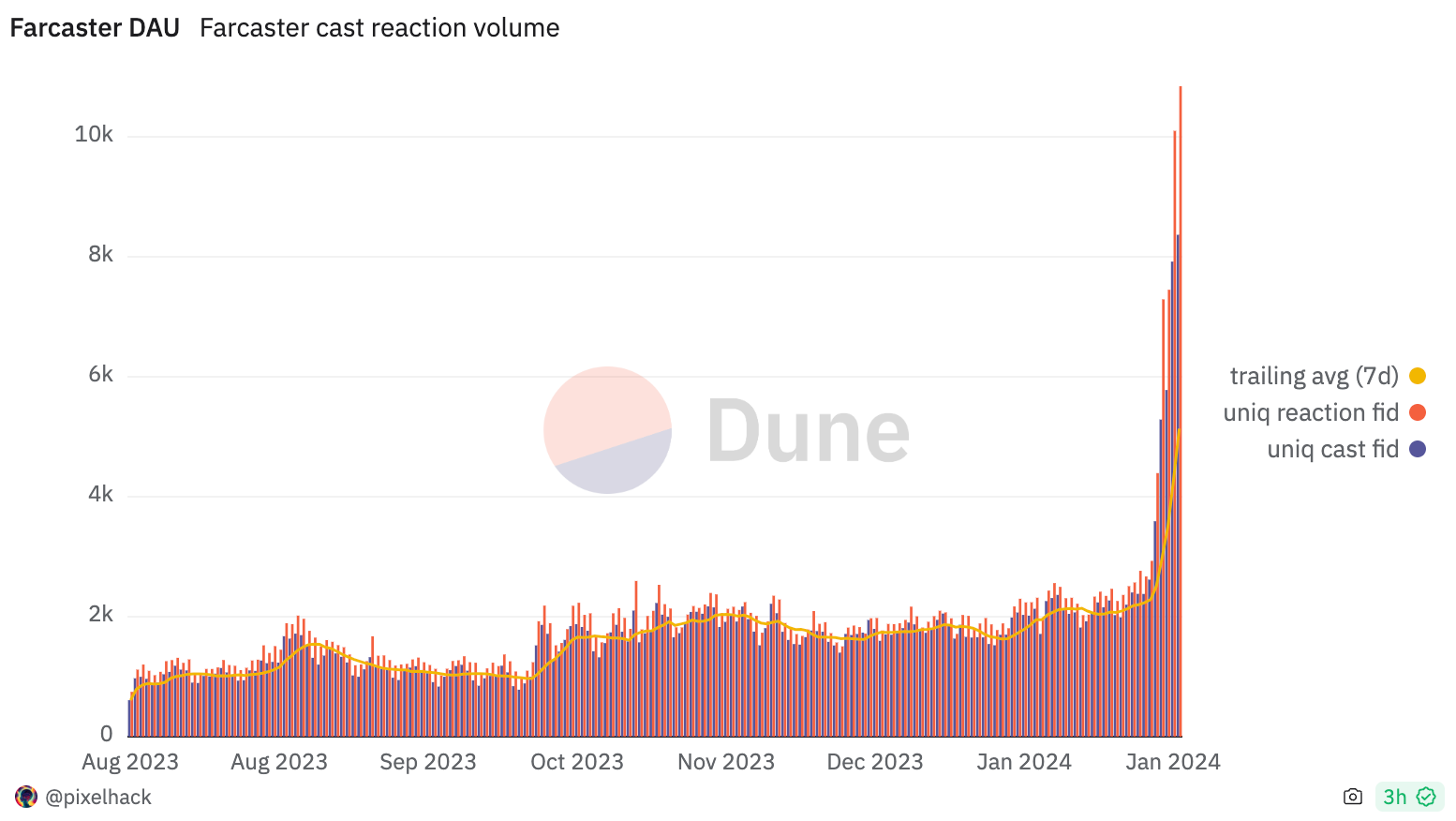 Farcaster (aka. an “on-chain” Twitter) has been around for over a year. Now, it’s taking off:
