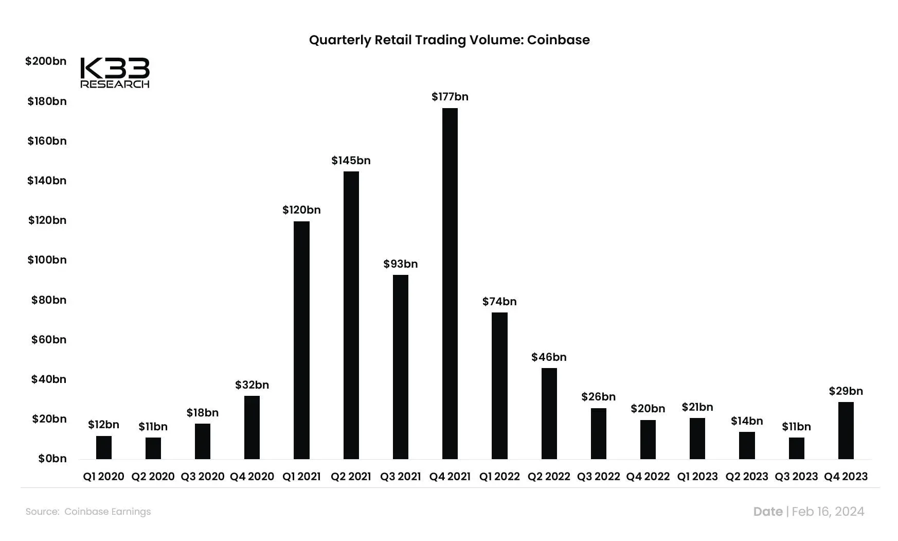 Why it matters: Soaring prices also drives private financing (aka “crypto-price innovation cycle”). Last week, EigenLayer, a restaking2 protocol on Ethereum, raised $100M at a $1B+ valuation led by a16z crypto. The rolling 3-month-average now sits at $196M, compared to the rolling 52-week average of $174M.