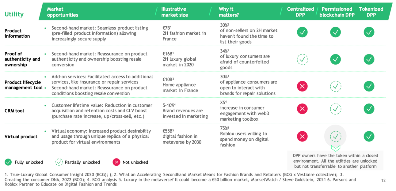 Be smart: By 2025, 75% of luxury brands are expected to adopt DPPs to comply with regulations. Brands have started leveraging web3 technology for loyalty and product-based experiences. Tokenized DPPs can reduce costs by up to 20% compared to cloud-based solutions.
