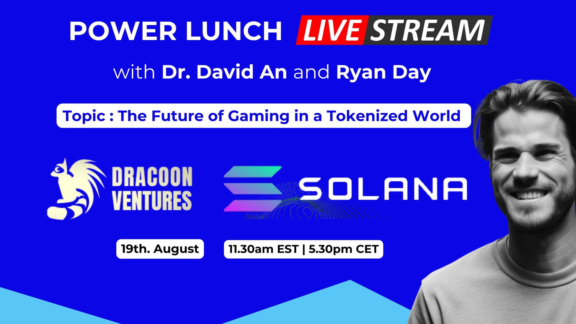 Joining us are Dr. David An from Dracoon Ventures and Ryan Day from Solana Labs. These experts will break down: