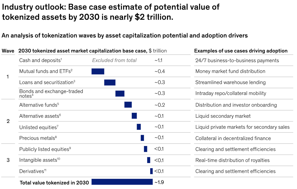 By the data: The tokenized market capitalization is expected to reach around $2T by 2030, driven by the adoption of tokenization in mutual funds, bonds, ETNs, loans, securitization, and alternative funds, excluding cryptocurrencies.