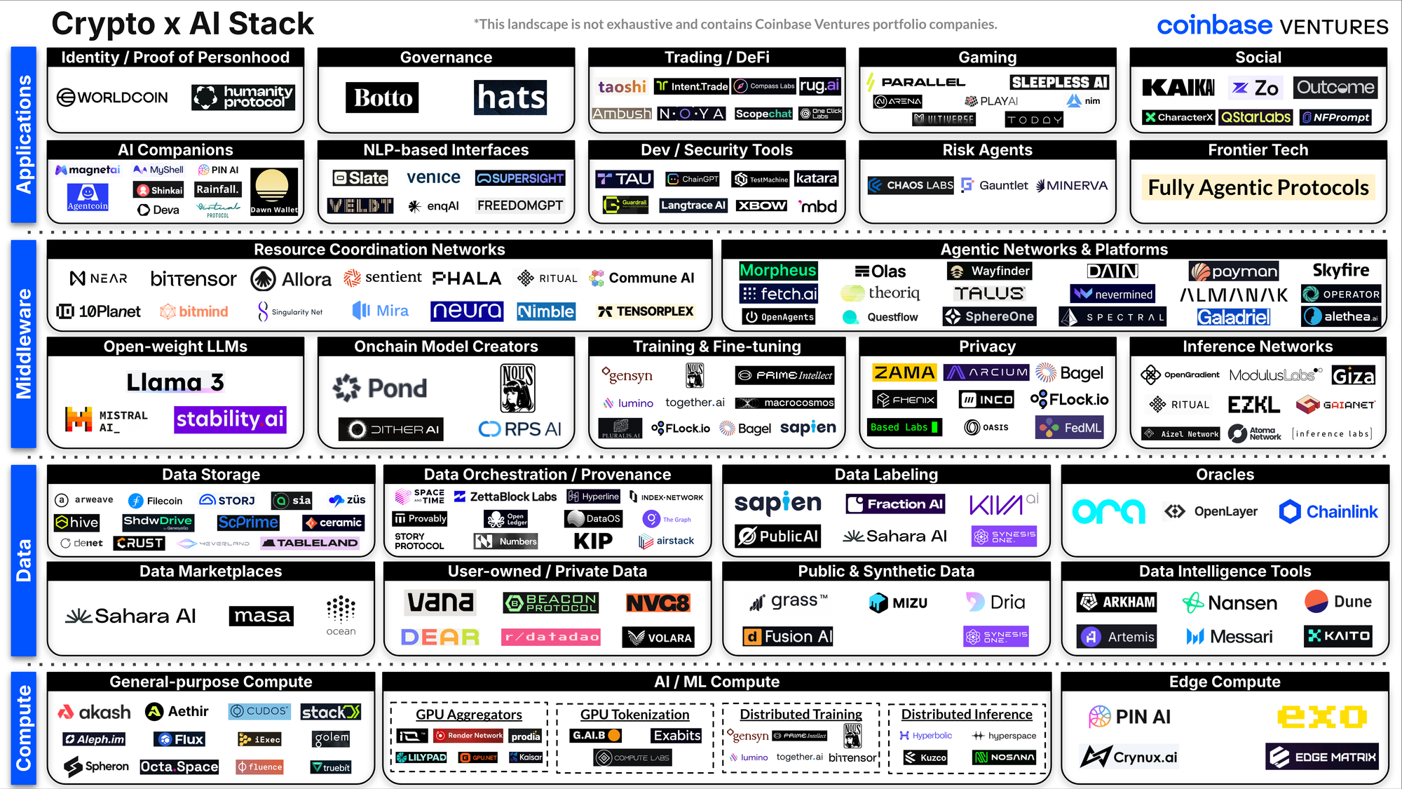 Hereās an amazing chart by Coinbase Ventures on the crypto x AI stack: