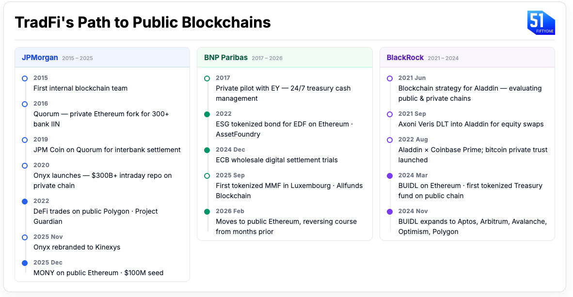 Stepping back: Starting March 2024, BlackRock put BUIDL on public Ethereum, followed by Franklin Templeton, JPMorgan, and now BNP Paribas.,