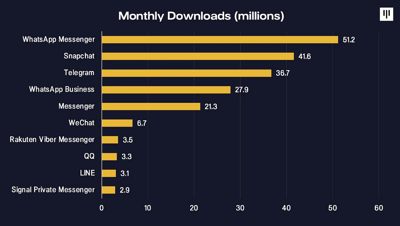 By the numbers: Telegram is the third biggest messaging platform, boasting 900M monthly active users, adding 36M users in January alone.