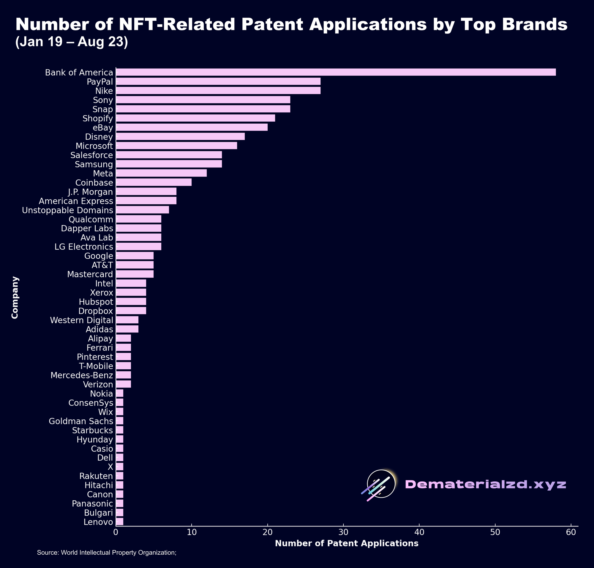 - Leading the pack: Bank of America, PayPal, Nike, Sony, and Snap top the all-time NFT patent charts.