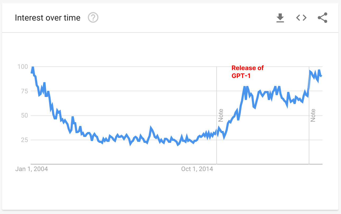 In 2018, when AI was at the top of Gartner's hype cycle, it was already on the agenda of the corporate elite at the World Economic Forum in Davos. “The technology will be better than fire” or it will “lead to World War III” is how beliefs diverged. It was just around the time GPT-1 opened. 1 Mainstream folks were still far away.