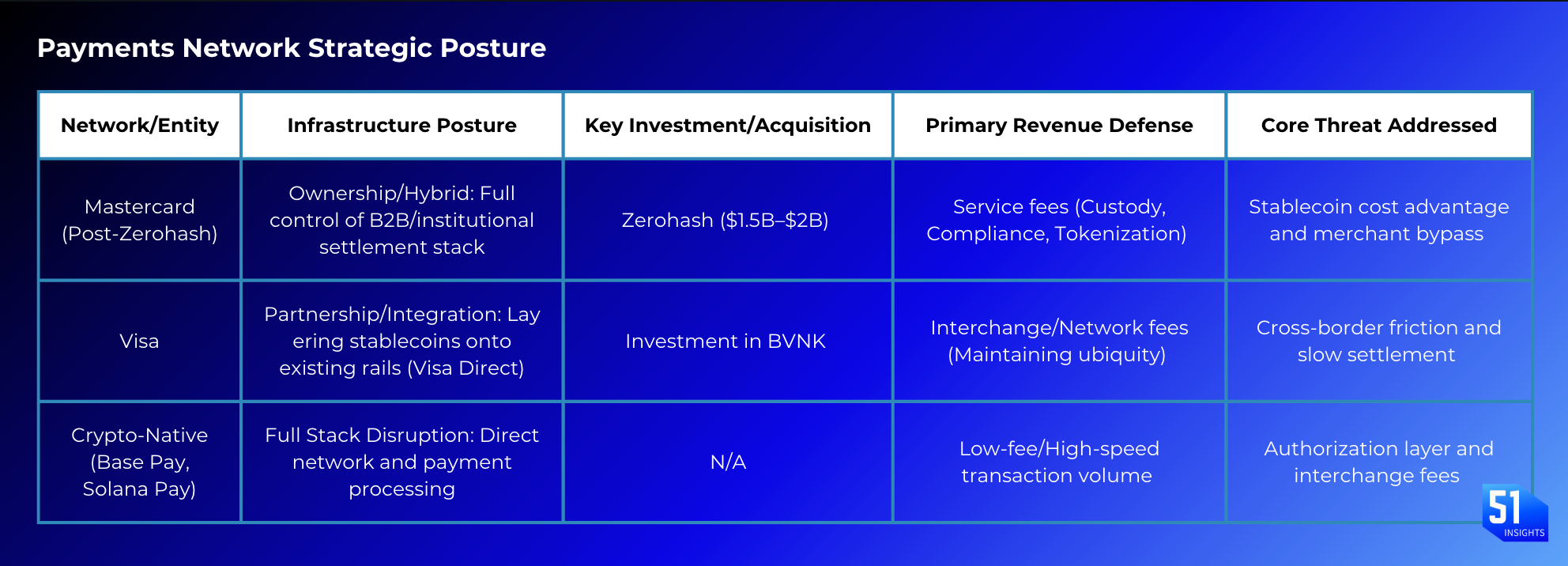Zooming in: Mastercard has long talked about “crypto-ready” payments, but most of its progress has been through partnerships and pilots. Owning infrastructure like Zerohash would give Mastercard direct control over the APIs that convert dollars into stablecoins, settle transactions on-chain, and manage custody. Zerohash key technological services include: custody and settlement, on/off ramps, tokenisation APIs, and compliance layer.