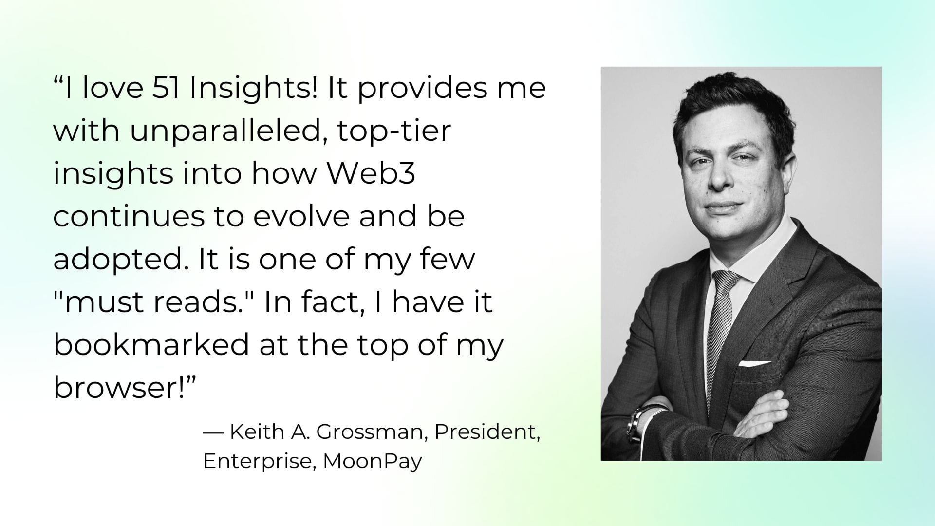 I’ve worked professionally in Web3 for 8+ years. I’m an entrepreneur, researcher, and a global Web3 thought leader with a B2B audience of over 50k+ people. In 2016, I got involved in the blockchain ecosystem and helped to build up Bitcoin Suisse as the CMO. Today, I’m the CEO of FiftyOne Ventures & 51 Insights, advising, scaling, investing, and researching on the future of consumer engagement across blockchain, data, gaming, and AI.
