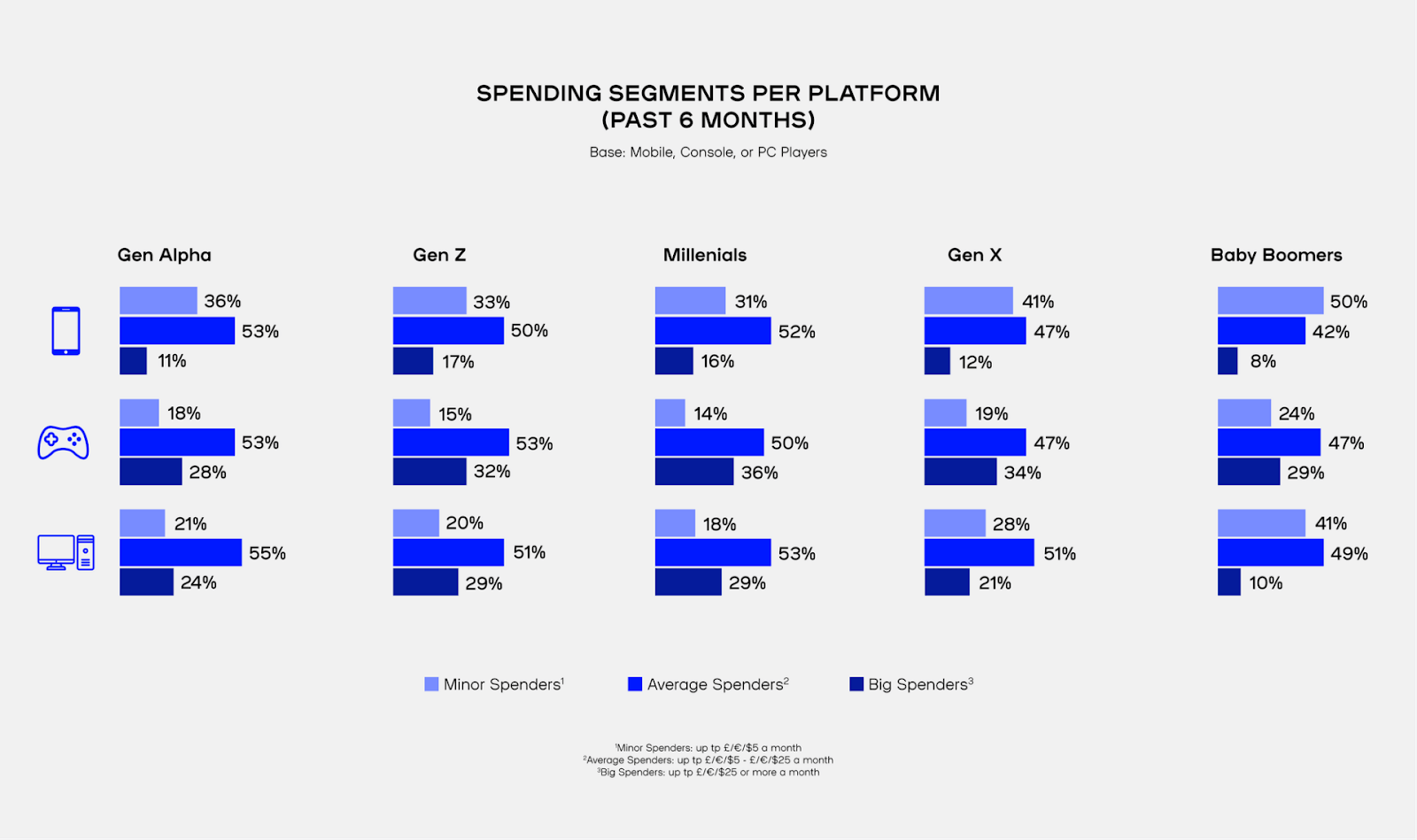 Gen Z and Gen Alpha aren’t just gaming—they’re spending. 52% of Gen Z gamers spend money regularly on games, outpacing the general online population. And 18% of Gen Z are willing to spend $50–$100 on virtual items each month.
