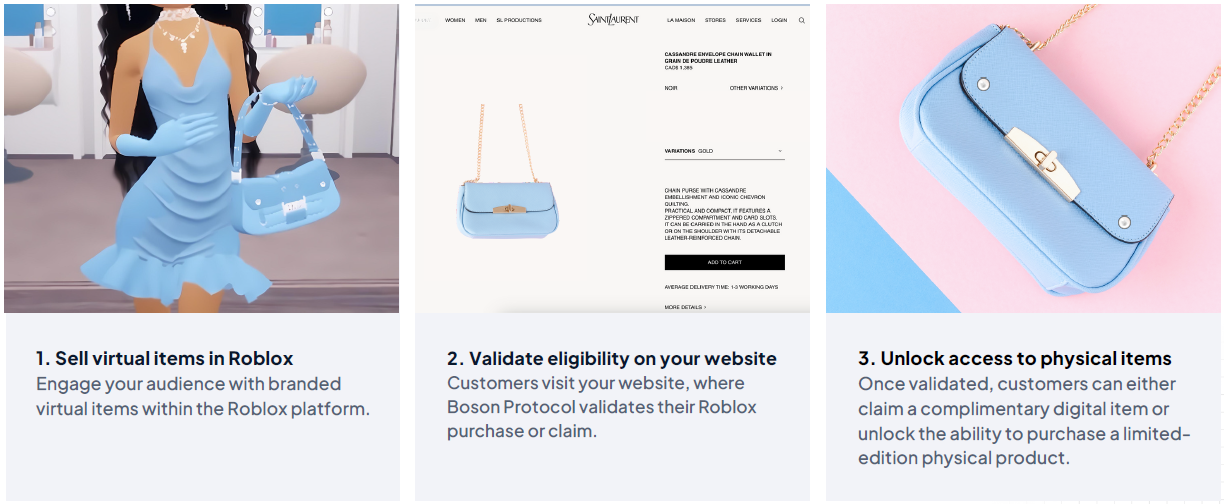 Boson: Aims for deeper integration with the Roblox experience bringing consumers to the brand’s website. Imagine a quest in a Roblox game where completing a challenge unlocks a discount code for a real-world item, or where owning a specific virtual item grants access to exclusive physical merchandise. Boson's infrastructure is designed to weave these connections into the game's fabric, making commerce a more natural part of the experience.