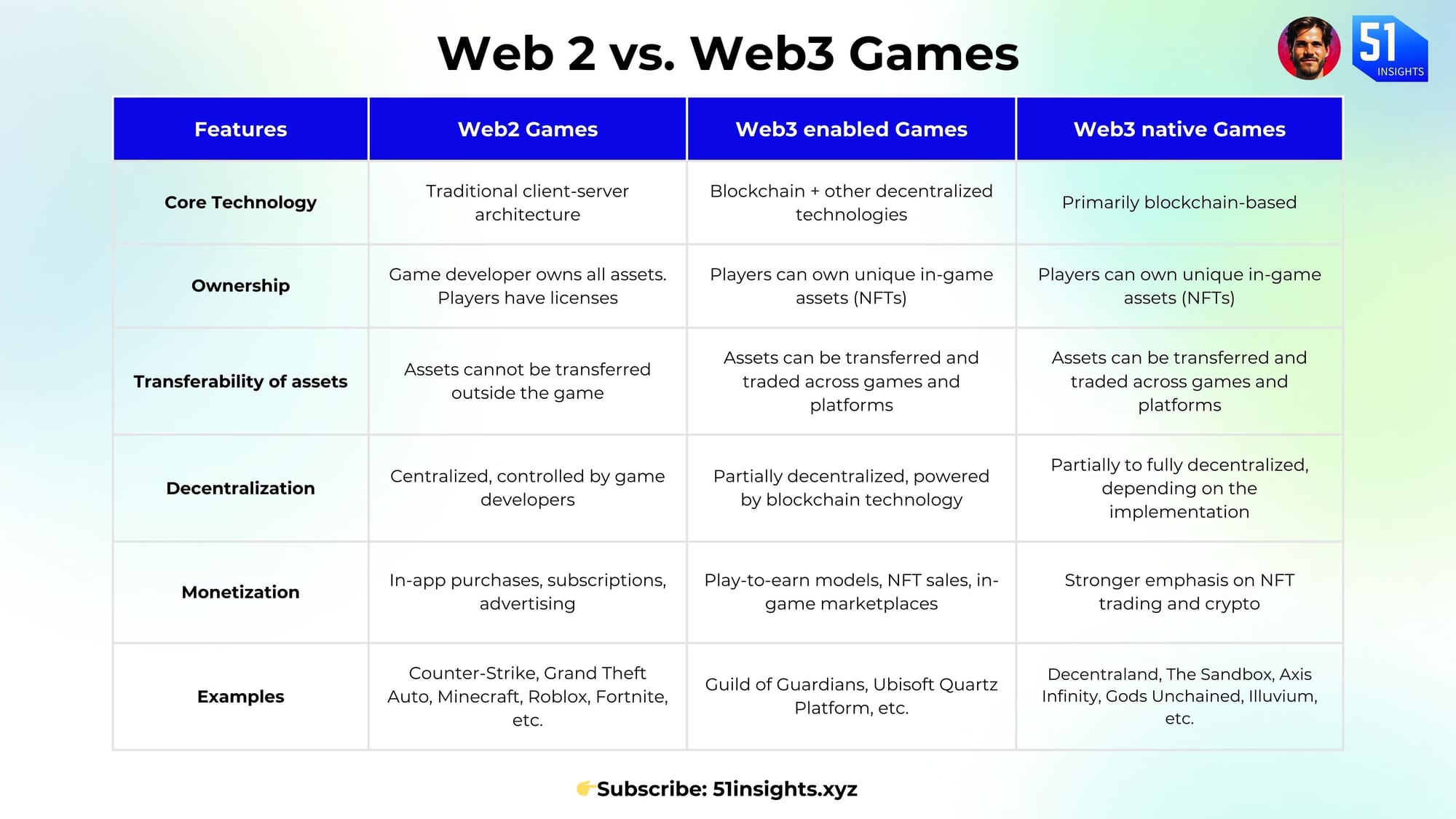- Web3 native blockchain games align with Web3 principles, while centralized ones use blockchain for specific functions but remain controlled by developers.