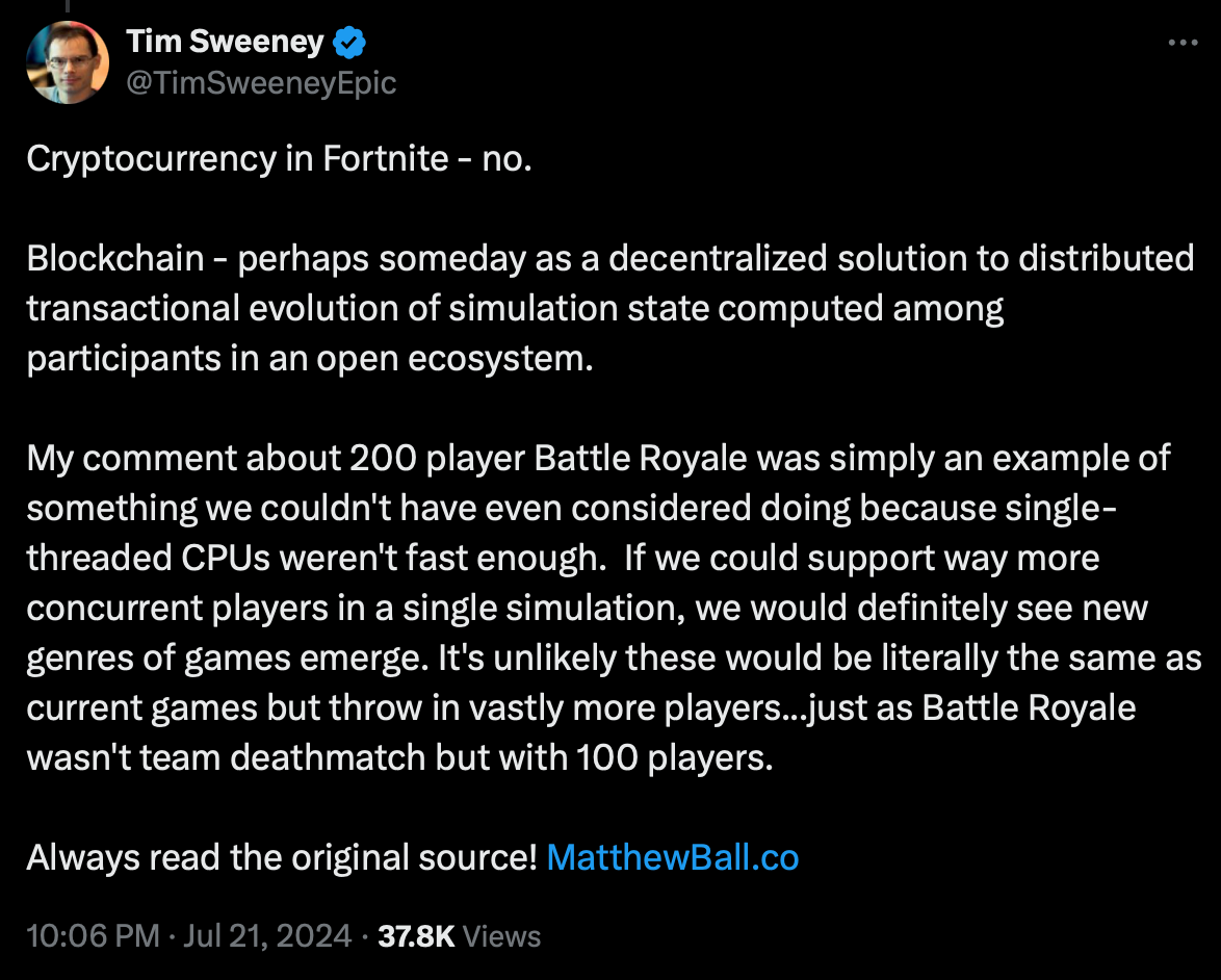Why it matters: Epic Games is enhancing user experience by introducing Web3 technology to mainstream games. As a leading PC game distribution platform, it shapes industry trends. Through gradual experimentation, Epic Games provides Web3 games with exposure to its 230 million users.