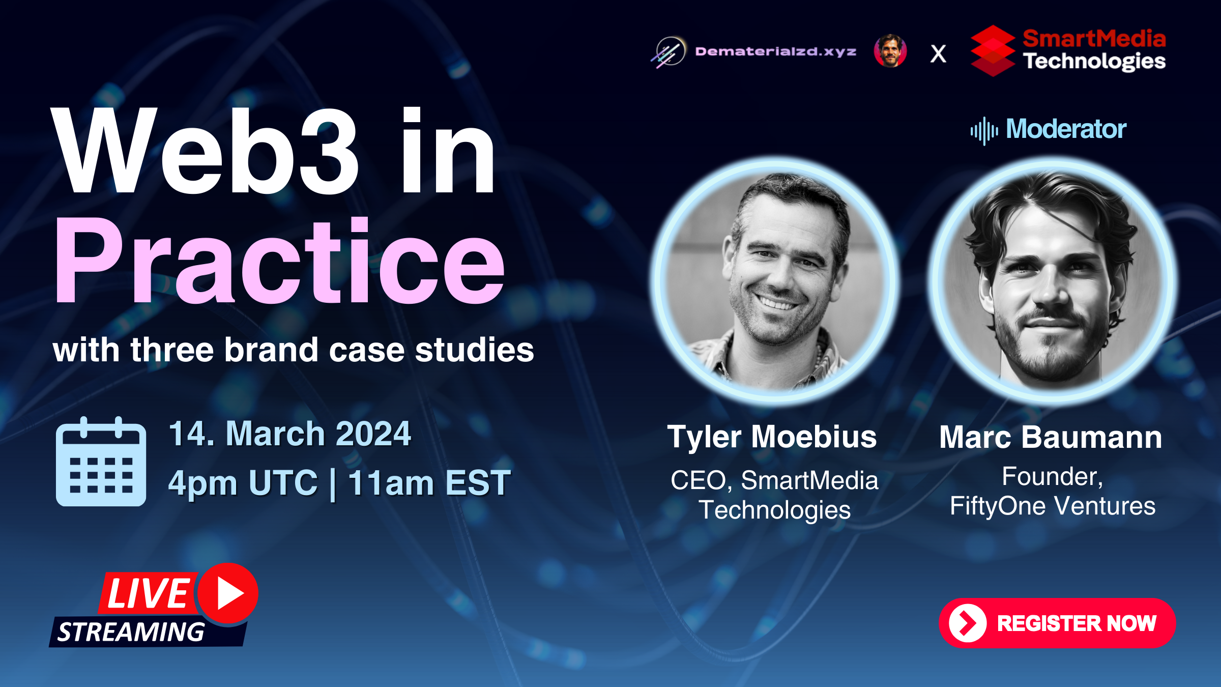 During the Web3 LinkedIn Live Series, SMT CEO, Tyler Moebius, and Marc Baumann have explored everything from the power of sports fandom in branding to the revolutionary ways Web3 is reshaping loyalty programs. In this final session, expect discussion of exclusive SMT case studies from top global brands. There will be an interactive live Q&A - so get your questions ready!