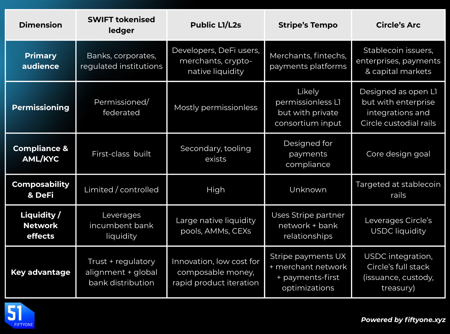 - Tempo: payments-focused, optimised for commerce, payroll, and remittances