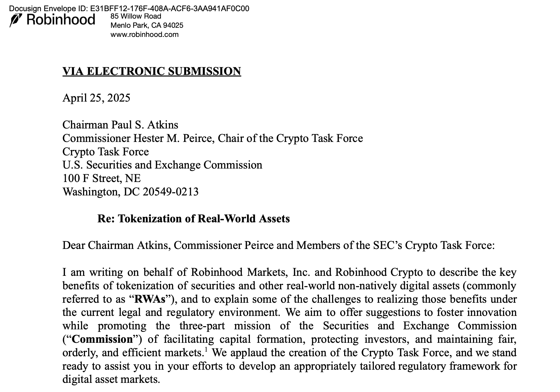 It's a regulated U.S. broker with 26 million users formally petitioning the Securities and Exchange Commission to greenlight the tokenization of real-world assets like stocks, treasuries, and funds.
