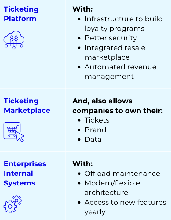 - Better data control: Organizers own audience data instead of relying on third-party platforms. Blockchain allows multiple companies to build around tickets without monopolizing access.