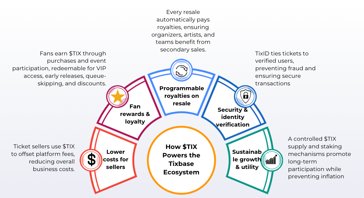 $TIX Rewards: Fans and sellers earn tokens redeemable for perks like skipping queues, pre-sales access, and VIP experiences.