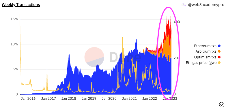 Polygon is on a roll: January 2023 saw Polygon’s proof-of-stake (PoS) monthly active addresses grow 23% month over month, and 155% year over year. Its PoS revenues hit $1.58m. Weekly network revenues have nearly 5x’d in the last month and a half (mostly due to increasd gas prices). Its NFT ecosystem saw a massive surge in transaction volume in the last three months. Of the entire worldwide blockchain economy, Polygon has the third-largest ecosystem for decentralized apps (dApps). Will it become the go-to chain for future brand NFTs? I will cover Polygon’s success in a future article. Stay tuned. Link