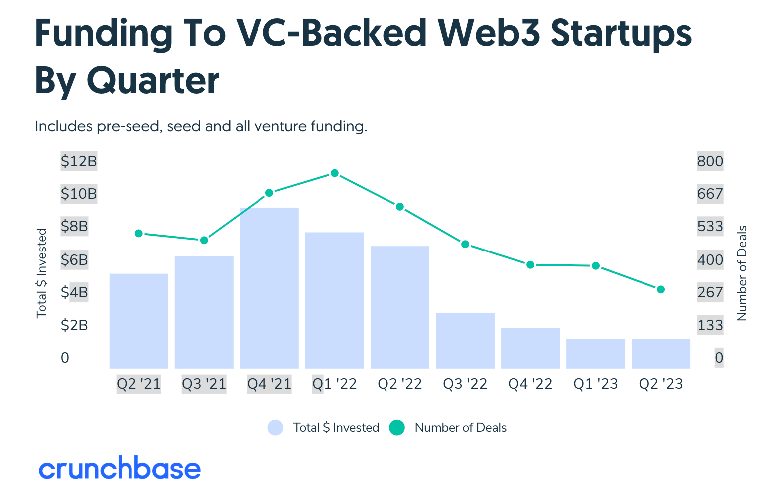 Takeaway: Web3 funding has dropped, but US VC funding across all industries dropped around 70% compared to last year. Web3 isn’t isolated.