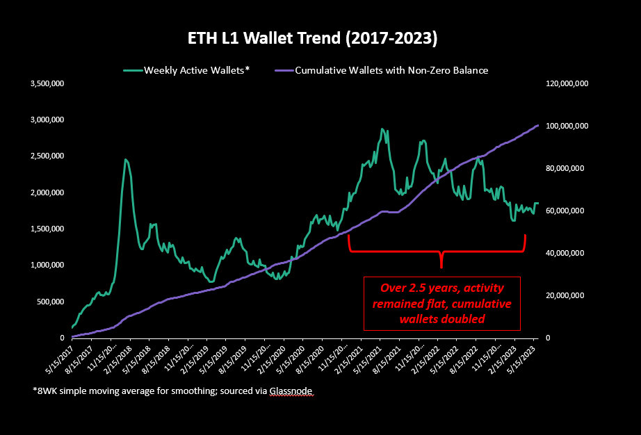 Ethereum on the rise: The introduction of the Shanghai-Capella fork in April has increased demand for ether, contrary to prior concerns. On-chain metrics for ether show signs of increasing resiliency, with the Total Value Staked (TVS) for the asset rising 5.7% month-over-month.